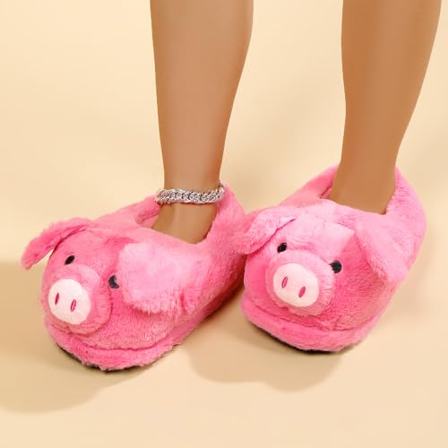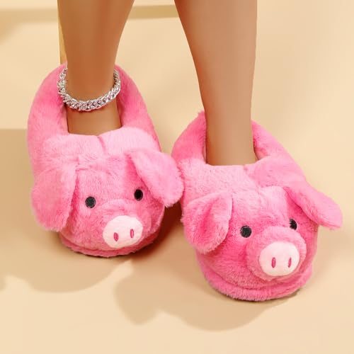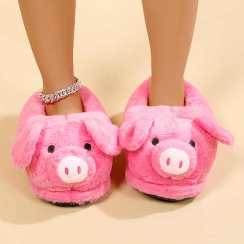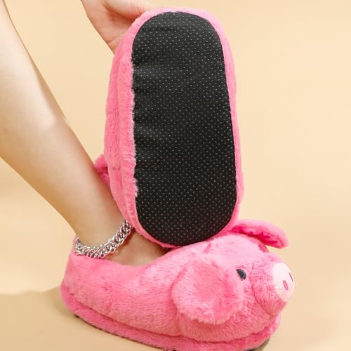 Cute Pig Plush Slippers for Women Men - Unisex Fuzzy House Slippers Soft Warm Cozy Indoor Shoes Non-Slip Sole | US Women 7.5-8 / Men 6-6.5 (Fit 25cm Foot Length)