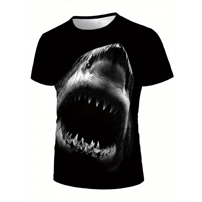 Men's Shark Print Graphic Design Active T-shirt - Casual and Comfy Tee for Summer, Gym, and Running